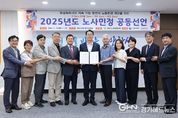 경기헤드뉴스 성미연 기자 | 화성시노사민정협의회가 10일 시청 중앙회의실에서 ‘3 Zero(차별Zero, 격차Zero, 사고Zero)’ 실현을 위한 노사민정 공동선언식을 개최했다. 이날 선언식에서 한국노총화성지역지부, 화성상공회의소, 화성시의회, 고용노동부경기지청, 화성특례시 등 노사민정 각 기관 대표자 등 화성시노사민정협의회 본협의회 위원 15명은 지역 내 지속 가능한 발전과 건강한 노동환경 조성을 위한 공동 실천 의지를 천명했다. 공동선언문은 지역사회의 노사 상생과 산업안전 강화, ESG 경영 실천을 핵심 과제로 삼고, 이를 이행하기 위한 공동의 책임과 역할을 다하겠다는 약속을 담고 있다. 또한, 핵심과제 이행을 위한 실천사항도 담고 있다. 협의회는 산업평화와 산업안전 구현을 위해 노동자의 생명과 안전을 최우선 가치로 삼고, 노동자는 안전보건 의식 강화, 기업은 안전한 근로환경 조성을 위한 투자와 지원, 정부는 정책 및 교육·캠페인 확대를 추진한다. 또한, 사용자·노동자·민정이 함께 ESG 경영을 실천하며, 차별과 격차 없는 고용 문화, 유해 물질 저감, 친환경 경영 전략 마련, 탄소중립 달
