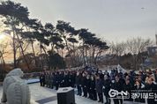 경기헤드뉴스 임수연 기자 | 평택시의회는 새해 아침 1일, 현충탑(평택시 현덕면) 참배로 병오년(丙午年)의 공식 일정을 시작했다. 이날 행사는 평택시의회 강정구 의장을 비롯한 시의원, 보훈·안보단체장, 평택시청 공무원과 유관 기관장 등이 참석했으며 묵념, 헌화 및 분향, 신년 상견례 순으로 진행됐다. 의원들은 새해를 맞아 나라를 위해 희생한 순국선열과 호국영령에 대한 헌화와 묵념을 마치고 2026년 한 해 의정활동에 대한 각오를 다졌다. 참배를 마친 강정구 의장은“조국을 위해 헌신하신 애국선열의 뜻을 새기며, 2026년 병오년에도 시민의 삶을 지키는 의회가 되겠다”라고 하며, “평택시의회는 어려운 경제 여건에도 최선을 다하고 계신 시민 여러분께 보탬이 될 수 있도록, 올해도 더욱 낮은 자세로 시민의 목소리에 귀 기울이고, 평택의 발전을 위해 보다 책임 있는 의정활동을 이어가겠다”라고 밝혔다.