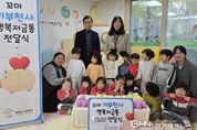 경기헤드뉴스 임수연 기자 | 평택시가족센터는 지난 16일 시립센트럴자이3단지 어린이집에서 원생 47명이 참여한 가운데 ‘꼬마 기부천사의 행복저금통’ 전달식을 진행하여 67만7710원을 후원받았다. ‘꼬마 기부천사의 행복저금통’은 저금통 후원사업의 하나로 기부 문화를 실천하고, 자발적인 기부 참여 확산을 도모하고자 시립센트럴자이3단지 어린이집을 포함하여 지역 내 유치원, 어린이집, 초등학교 등 15개 기관이 참여하고 있으며, 각 기관에서 전달식을 진행하여 아이들에게 모금된 금액의 사용 용도와 나눔의 의미를 이해하는 시간을 갖고 있다. 시립센트럴자이3단지 어린이집 서효순 원장은 “아이들과 함께 모은 소중한 행복저금통이 주위에 어렵고 힘든 이웃과 다문화가족에게 도움이 됐으면 좋겠다. 아이들이 따뜻한 나눔 문화를 배울 수 있게 기회를 주어 감사하다”고 전했다. 김성영 센터장은 “아름다운 지역사회를 만들어 나가는데 함께해 주심에 진심으로 감사하다. 소중한 마음이 담긴 후원금은 꼭 필요한 분들에게 잘 전달하겠다”고 답했다. 평택시가족센터는 매년 ‘꼬마 기부천사의 행복저금통’ 사업을 진행하고 있으며, 모인