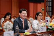 경기헤드뉴스 성미연 기자 | 이상일 용인특례시장은 26일(현지 시각) 오전 베트남 꽝남성청에서 레반중(Lê Ván Dũng) 꽝남성 인민위원회 위원장(꽝남성장) 등 꽝남성 고위 관계자들과 간담회를 열고 양 도시의 교류협력 방안을 논의했다. 이날 간담회에는 이 시장을 비롯해 유진선 용인특례시의회 의장과 이창식 시의회 부의장 등 시의원, 레반중 꽝남성장(인민위원회 위원장), 쩐 쑤안 빈(Tran Xuan Vinh) 인민의회 부의장, 응우엔 티 튀 짱(Nguyen Thi Thuy Trang) 인민위원회 부사무국장, 응우엔 뜩 삔(Nguyen Duc Binh) 과학기술국 국장, 응우엔 민 남(Nguyen Minh Nam) 땀끼시 인민위원회 부위원장(부시장) 등이 참석했다. 이 자리엔 이 시장의 참석 요청을 받은 김상식 베트남 축구 국가대표팀 감독도 함께 했다. 이상일 시장은 “꽝남성과 땀끼시 관계자들이 용인특례시 대표단을 따뜻하게 맞아주셔서 감사하다”며 “어제 꽝남성 측 안내로 호이안의 고대도시를 돌아봤는데 오랜 역사가 잘 보존되어 있고 베트남 특유의 정서를 느낄 수 있었다. 꽝남성과 용인특례시가 2013년 우호