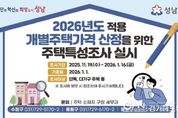 경기헤드뉴스 권준형 기자 | 성남시는 내년 1월 16일까지 단독·다가구·상가주택을 대상으로 ‘2026년 1월 1일 기준 개별주택가격 산정’을 위한 주택특성조사를 실시한다. 이번 조사는 총 2만8970호(수정구 1만5829호, 중원구 7754호, 분당구 5387호)를 대상으로 진행된다. 정확한 주택특성 파악을 위해 조사요원은 건축물관리대장, 토지대장 등 행정정보를 사전에 확인한 뒤 현장을 방문해 △토지 형상 △방위 △도로 접면 상태 등 토지특성과 △주택 이용 상황 △건물구조 △지붕 형태 △증·개축 여부 등 건물 특성을 조사할 예정이다. 조사 완료 후에는 결과를 반영해 개별주택가격을 산정하고, 한국부동산원의 검증을 거쳐 주택 소유자와 이해 관계인에게 열람 기회를 제공한다. 이후 의견 제출 절차와 부동산가격공시위원회 심의를 통해 내년 4월 30일 개별주택가격을 최종 결정·공시할 예정이다. 성남시 관계자는 “개별주택가격은 국세·지방세, 건강보험료 등 각종 공적 업무의 기초자료로 활용되는 중요한 지표”라며 “정확한 조사를 위해 조사요원의 현장 방문이 필수적인 만큼 시민 여러분의 적극적인 협조를 부탁드린다