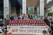 경기헤드뉴스 성미연 기자 | 오산시 세마동 새마을부녀회는 지난 17일 독거노인, 저소득 가정, 차상위 계층 등 관내 취약계층을 위한 ‘사랑의 고추장 담그기’ 행사를 개최했다고 밝혔다. 이번 행사는 세마동 새마을부녀회를 중심으로 새마을지도자협의회, 통장협의회, 지역사회보장협의체 등 세마동의 여러 단체가 함께 참여해 이웃사랑의 의미를 더했다. 이날 정성껏 담근 고추장은 취약계층 60여 세대에 전달될 예정이다. 신정순 세마동 새마을부녀회장은 “회원들이 정성을 담아 만든 고추장이 어려운 이웃들에게 작은 힘이 되길 바란다”며, “앞으로도 꾸준한 봉사활동을 통해 따뜻한 지역공동체를 만들어가겠다”고 전했다. 유미정 세마동장은 “매년 이웃사랑 실천을 위해 적극 참여해 주시는 새마을부녀회 회원분들께 깊이 감사드린다”며, “세마동 행정복지센터에서도 소외된 이웃이 없도록 지역 나눔 문화를 지속적으로 지원하고 확산해 나가겠다”고 말했다. 한편, 세마동 새마을부녀회는 매년 ‘사랑의 고추장 담그기’, 목욕 봉사, 김장 나눔 행사 등 다양한 활동을 통해 지역사회 나눔과 이웃사랑 실천에 앞장서고 있다.