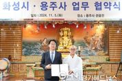 경기헤드뉴스 성미연 기자 | 화성시가 5일 용주사와 함께 송년제야행사 타종식을 위한 업무협약을 체결했다. 이날 용주사 관음전에서 진행된 협약식은 정명근 화성시장과 용주사 주지 성효스님이 참석한 가운에 진행됐으며, 주요 협약 내용은 ▲화성시 송년제야행사 개최 시 용주사에서 타종식 진행 ▲기타 업무 추진에 필요한 교류 및 협력이다. 화성시는 이번 협약을 통해 정조효공원에서 열리는 화성시 송년제야행사의 타종식을 행사장 가까이 위치한 용주사와 연계해 진행하기로 했다. 용주사는 아버지인 사도세자를 기리는 정조대왕의 효심이 깃든 사찰로 국보 제120호 용주사 동종, 보물 제1942호 용주사 대웅보전 등 다양한 문화재가 있으며 현재 대한불교 조계종 제2교구 본사이다. 정명근 화성시장은 “이번 용주사와의 업무협약으로 화성시의 문화적 위상을 높일 수 있게됐다”며, “용주사와 함께하는 송년제야행사가 시민들과 함께하는 대표적인 연말연시 행사로 자리매김하길 기대한다”고 말했다.