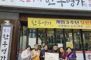 경기헤드뉴스 임채헌 기자 | 시흥시 정왕2동에 있는 한우명가가 지난 6월부터 현재까지 지역사회 취약계층을 위한 따뜻한 음식 나눔을 이어가고 있어 훈훈함을 더하고 있다. 한우명가는 매월 정기적으로 갈비탕과 해장국 40인분을 정왕2동 행정복지센터에 기부하고 있으며, 기부된 음식은 독거노인 등 식사 준비에 어려움을 겪는 이웃들에게 전달되고 있다. 서원석 한우명가 대표는 “어려운 이웃들에게 잠시나마 따뜻한 위로와 든든한 한 끼가 되기를 바르는 마음으로 음식 나눔을 시작했다”라며, “앞으로도 정왕2동 주민들과 함께 나누는 기쁨을 꾸준히 실천해 나가겠다”라고 말했다. 정연임 정왕2동장은 “장기적인 경기침체 속에서도 지난 6월부터 변함없이 후원해 준 한우명가 대표에게 진심으로 감사드린다”라며, “후원 물품은 따뜻한 마음을 담아 관내 어려운 이웃들에게 소중히 전달하겠다”라고 말했다.
