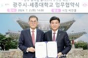 경기헤드뉴스 성미연 기자 | 광주시는 2일 시청 6층 비전홀에서 세종대학교와 융복합 클러스터 조성사업을 위한 업무협약(MOU)을 체결했다. 이번 협약은 미래산업의 중심이 될 첨단과학 기술인 국방, 항공우주, 바이오테크 연구단지를 조성해 지역산업을 활성화하고 연구개발 및 우수 연구 인력을 육성하기 위해 마련됐다. 사업대상지는 도척면 유정리 산4-5 일원이며 부지면적 15만7천600㎡에 3개 동(연면적 1만8천73㎡) 규모로 조성할 계획이다. 협약에 따라 시는 신속한 행정절차 및 진입도로 등 기반시설 인프라를 지원한다. 세종대학교는 연구시설 조성과 교육시설‧ 산학 연구시설 유치, 스타트업 활성화 및 창업 교육, 견학 및 교육프로그램 운영·지원 등 상호 협력하기로 했다. 이에 따라 양 기관은 적극적 협력 및 지원을 통해 지역경제 활성화, 미래 유망분야의 원천기술 개발, 국가 기술력·경쟁력 강화 등에 크게 기여할 것으로 전망하고 있다. 방세환 시장은 “이번 협약을 계기로 첨단 융복합 연구단지 입지를 통한 시 이미지 제고와 함께 첨단시설과 연계된 기업 유치를 통한 지역경쟁력 강화 및 관내 학