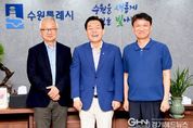 경기헤드뉴스 성미연 기자 | 이재준 수원시장이 루크 리(Luke Lee) 하버드대 의과대학 교수를 만나 융합바이오 분야 교류 확대 방안을 논의했다. 이재준 시장은 2일 집무실에서 루크 리 교수, 조규진 성균관대 생명물리학과 교수와 간담회를 열고, 수원시 융합 바이오 분야 활성화 방안과 한국·과학기술인재 교류 방안 등을 논의했다. 루크 리 교수는 융합바이오 분야 세계적인 석학으로 업적을 인정받아 2010년 호암상을 수상한 바 있다. 지난 5월 수원컨벤션센터에서 열린 ‘2024 광교 바이오 주간’ 행사에서 특별강연을 했다. 루크 리 교수는 “수원시는 우수한 산업·문화 인프라를 보유한 도시로 알고 있다”며 “우수한 인프라가 바이오산업과 융합한다면 무한한 성장 잠재력이 될 것”이라고 말했다. 이재준 시장은 “하버드대·성균관대와 같은 우수 대학과 긴밀하게 협력해 수원시 공직자, 학생들이 글로벌 역량을 갖출 수 있는 교류 프로그램을 추진하길 바란다”며 “수원시 바이오산업 발전을 위해 많은 조언과 도움을 주시길 바란다”고 당부했다.