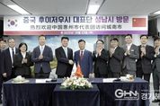 경기헤드뉴스 성미연 기자 | 성남시는 국제 자매도시인 중국 후이저우시 대표단이 성남 국제 바이오헬스케어 컨벤션(10.23~24) 행사 참관을 위해 지역을 방문했다고 24일 밝혔다. 이번 방문은 성남시와 후이저우시가 2016년 우호협력도시 협약을 체결하고서 올해 6월 자매결연 협약 체결로 관계를 격상한 뒤 성남시의 초청으로 이뤄진 첫 공식 교류 일정이다. 중국 후이저우시 부시장 일행은 10월 23일 오후 2시 성남 국제 바이오헬스케어 컨벤션 현장인 성남글로벌융합센터(시흥동)를 찾았다. 돤즈후이 중국 후이저우시 부시장은 컨벤션 개막식에서 “성남시와 후이저우시는 한국과 중국을 대표하는 혁신 산업도시”라면서 “향후 양 도시의 기술혁신과 연구개발을 중심으로 상생 협력을 강화해 나가길 바란다”는 내용의 축사를 했다. 대표단은 이어 △16개국 51명의 바이어가 참여한 수출상담회 △50개 부스의 의료기기, 인공지능(AI)·디지털 헬스케어, 바이오헬스케어 제품 전시장 △비즈니스 교류회 등을 참관했다. 성남시청 4층 시장 집무실을 방문해 신상진 성남시장과 간담회를 하고, 경제·산업 협력 확대와 혁신기