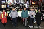 경기헤드뉴스 임채헌 기자 | 안산시는 시민이 안심하고 명절을 보낼 수 있도록 지역 내 모든 안전 관련 기관이 참여하는 민생 안전 대응체계에 본격적으로 나섰다. 시는 지난 9일 오후 ‘제15회 일사천리 민생안전회의’를 개최한 데 이어, 같은 날 저녁 외국인 밀집 지역인 원곡동 다문화특구 일원에서 설 명절 대비 민․관․경 특별 합동 순찰을 전개했다고 10일 밝혔다. 이날 합동 순찰에는 이민근 안산시장을 비롯해 김수진 안산교육지원청 교육장, 이영찬 안산단원경찰서장, 고영주 안산소방서장, 우채명 평택해양경찰서장 등 지역 주요 안전 기관장들이 모두 참여했다. 또한 안산시, 안산단원경찰서, 안산출입국·외국인사무소를 비롯해 자율방범대, 생활안전협의회 등 협력 단체 관계자 140여 명이 함께했다. 참여자들은 다문화어울림공원에서 출발해 원곡공원과 원곡파출소 일대를 잇는 약 2km 구간을 도보로 순찰하며, 지역 주민을 대상으로 보이스피싱 등 각종 범죄 예방 홍보 활동을 전개했다. 순찰 과정에서는 범죄 취약 요소와 치안 사각지대를 집중 점검하는 한편, 주민들과 직접 소통하며 생활 속 불안 요인과 개선이 필요한 사항