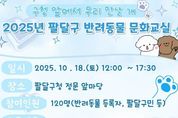 경기헤드뉴스 성미연 기자 | 수원시 팔달구는 10월 18일 오후 12시부터 17시 30분까지 팔달구청 정문 앞마당에서 ‘2025년 팔달구 반려동물 문화교실’을 개최한다고 밝혔다. 반려동물 문화교실은 성숙한 반려문화 확산과 올바른 반려동물 관리, 양육 방법을 알리기 위해 마련됐으며 반려동물 등록자 및 팔달구민 120명을 대상으로 추진한다. 교육 프로그램은 △인식표 만들기 △산책 그룹 훈련 △반려견 셀프 미용으로 총 3개 프로그램을 추진한다. 12시부터 진행하는 ‘인식표 만들기’는 반려견 유실 방지를 위해 동물등록번호와 견주 연락처를 새긴 맞춤형 인식표를 직접 제작할 수 있고, 14시부터는 ‘산책 그룹 훈련’에서는 산책줄 핸들링과 돌발 상황 시 대처법 등 및 올바른 산책 방법에 대해 배워볼 수 있다. 15시 30분에는 초보자도 쉽게 실천할 수 있는 ‘반려견 셀프 미용 수업’이 준비되어 있다. 팔달구 관계자는 “2025년 반려동물 문화교실 개최를 통해 구민들이 반려동물을 책임감 있게 관리하고, 올바른 반려 문화가 조성되길 바란다“라고 말했다. 한편, 팔달구는 구 홈페이지, 안내문자 및 Q
