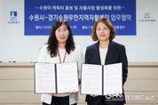 경기헤드뉴스 성미연 기자 | 수원시와 경기수원우만지역자활센터가 협약을 체결하고, 수원이 캐릭터 홍보와 자활사업 활성화를 위해 협력하기로 했다. 협약에 따라 수원시는 2024년 수원이 굿즈 품목을 선정한 후 디자인을 개발하고, 경기수원우만지역자활센터는 굿즈를 제작‧유통한다. 수원시는 자활센터에 수원이 캐릭터 굿즈 제작을 맡겨 취약계층 자활사업이 활성화 되도록 지원하고, 우만지역자활센터는 온오프라인 시스템을 활용해 안정적인 굿즈 판로를 개척할 것으로 기대된다. 자활센터가 제작한 굿즈는 수원시에서 일부 구입한다. 18일 경기수원우만지역자활센터에서 열린 협약식에는 정혜인 수원시 홍보기획관, 김기자 우만지역자활센터장 등이 참석했다.