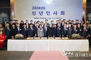 경기헤드뉴스 성미연 기자 | 안성상공회의소는 1월 9일 11:00 THE AW 웨딩컨벤션에서 박승삼 경기도 경제투자실장, 김보라 안성시장, 김학용 국회의원, 최혜영 국회의원, 안정열 안성시의회 의장, 유도윤 수원지방검찰청 평택지청장, 정순범 평택세무서장, 이상훈 안성경찰서장 등 각 기관장과 사회단체장, 안성상공회의소 의원 및 기업체 대표, 임직원, 지역상공인 등 250여명이 참석한 가운데 ‘2024년도 신년인사회’를 개최했다. 한영세 회장은 신년사를 통해 “지난 2023년은 우크라이나 사태 장기화, 이스라엘-팔레스타인 분쟁 등이 세계 경제 전반에 걸쳐 악영향을 미쳤으며, 2024년 또한 경제위축이 불가피할 것으로 전망되지만, 이처럼 어려운 여건 속에서도 우리가 포기하지 않고 끊임없이 도전을 이어갈 때 우리 경제는 다시 회복되고, 높이 비상할 것이며, 이 모두가 바로 우리 기업인들의 몫이며 힘이다”라고 말했다. 이를 위해 안성상공회의소에서는 “106년의 역사를 통해 축적된 노하우와 경험을 바탕으로 한 경제계 대표로서, 상공인들의 의견과 애로사항을 적극적으로 수렴하고 소통하여 정책대안을 제시하고 민원해결을 위해 최선을 다하