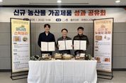경기헤드뉴스 임채헌 기자 | 시흥시 농업기술센터는 지난 1월 30일 센터 내에서 지역 농산물을 활용한 ‘신규 농가공제품 개발 성과공유회 및 기술이전 업무협약식’을 열었다. 이번 행사는 지난 2025년 3월부터 12월까지 약 10개월간 시흥시 농업기술과와 지역 농가가 협력해 추진한 농산물 가공 제품 연구개발 성과를 공유하고, 개발 기술의 현장 적용 과 실용화를 촉진하기 위해 마련됐다. 이번에 개발된 제품은 총 2종이다. ▲‘감자누룽지과자’는 시흥 친환경 감자와 쌀, 연근을 최적의 비율로 배합해 바삭한 식감과 고소한 풍미를 극대화했다. ▲‘미나리스틱젤리’는 시흥 미나리를 추출해 영양성분을 가득 담아내면서도 과일 향을 더해 대중적인 입맛과 간편하게 섭취할 수 있도록 만든 제품이다. 두 제품 모두 지역 특산물의 영양을 유지하면서도 현대인의 입맛과 유행을 반영해 상품성을 높였다는 평가를 받았다. 시는 이날 업무 협약을 통해 연구 개발된 핵심 기술을 해당 농가에 이전하고, 오는 4월까지 제품 브랜드 및 포장재 개발, 주문자 상표 부착 생산(OEM) 업체 선정을 마무리할 계획이다. 이후 6월부터는 본격적인 제품 생산과