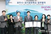 경기헤드뉴스 권민성 기자 | 광주시는 30일 시청 비전홀에서 광주하남교육지원청과 지역교육 협력 강화를 위한 ‘광주시–경기공유학교 학교 맞춤형 업무협약’을 체결했다. 이날 협약식에는 방세환 시장과 오성애 교육장을 비롯해 양 기관 관계자들이 참석했다. 이번 협약은 기존 ‘광주미래교육협력지구’ 사업이 올해 2월 종료됨에 따라 사업 명칭을 ‘경기공유학교 학교 맞춤형’으로 변경하고 광주시와 경기도교육청이 앞으로 2년간 지역 내 학교와 학생을 대상으로 맞춤형 교육지원사업과 경기공유학교 정책을 연계·추진하기 위해 마련됐다. ‘경기공유학교 학교 맞춤형’ 사업은 공공이 책임지고 지역이 함께 참여해 학교 교육을 지역으로 확장하는 공공·협력·개방·확장형 미래교육 민관 협치 참여를 의미한다. 이를 통해 지역 여건과 학교 수요를 반영한 교육 협력 체계를 구축한다는 계획이다. 현재 시는 광주하남교육지원청과 협력해 초·중·고등학생을 대상으로 학교-지역 이음 오케스트라, 온마을 체험학교(탐방·체험터·마을강사), 진로 교육 지원, 미래학교 조성 지원 등 다양한 미래교육협력지구 사업을 추진하고 있다. 양 기관은 협약 체결 이후